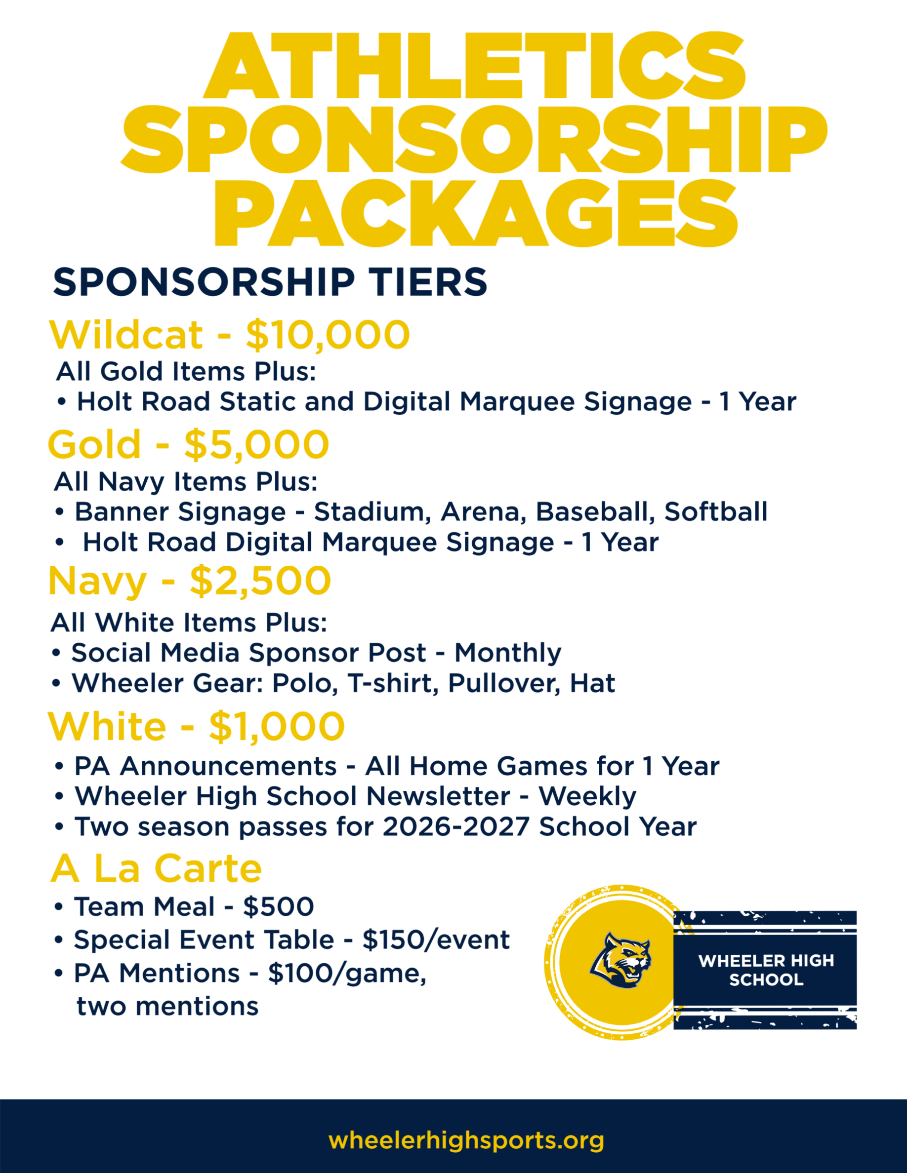 Wheeler High School Athletic Sponsorship Opportunities